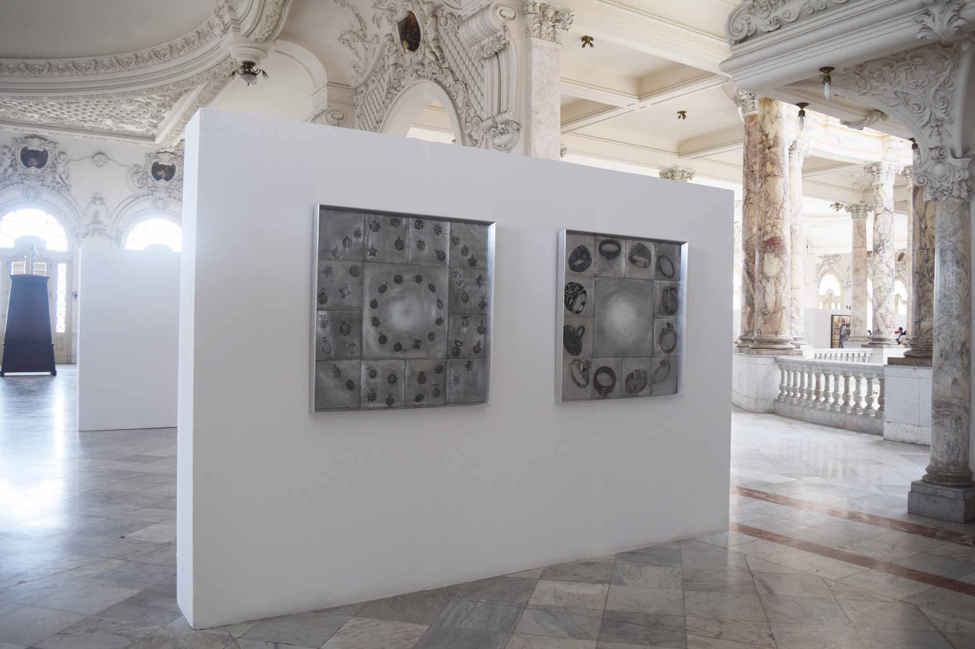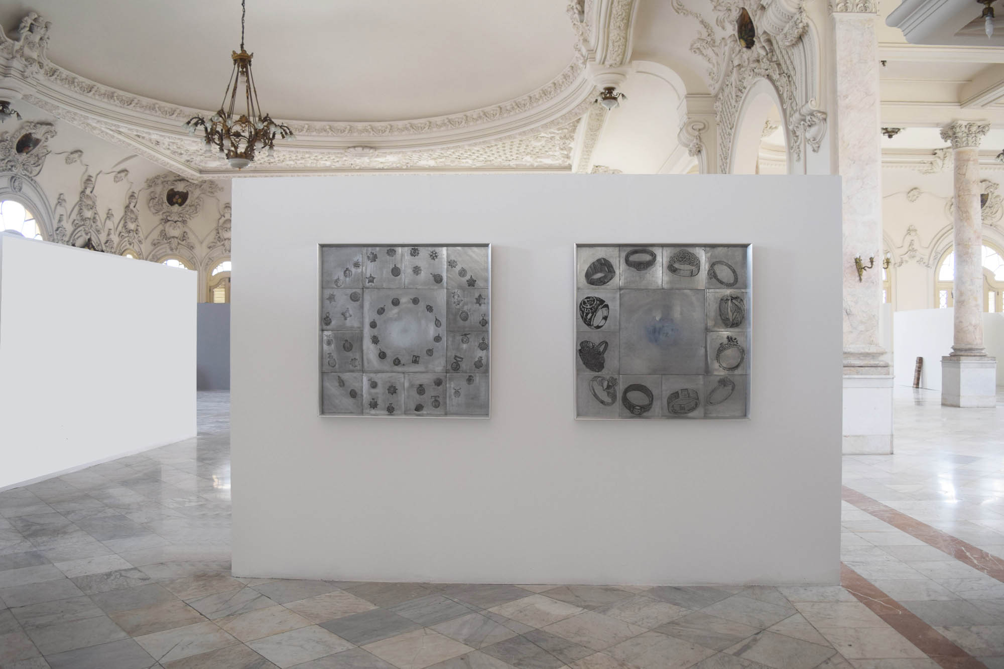 En una órbita los nodos son puntos que se hallan donde dicha orbita cruza un plano de referencia. En términos generales, constituyen un espacio real o abstracto en el que confluyen las conexiones de otros espacios que comparten características y que a su vez son nodos. Todos se interrelacionan de una manera no jerárquica y conforman lo que en términos sociológicos o matemáticos se llama red. Esta pieza articula una red de medallas. El círculo interior contiene 12 medallas religiosas. Y los exteriores medallas de condecoración militar. Explora jerarquías de valor y distinción, establecidas por el hombre.